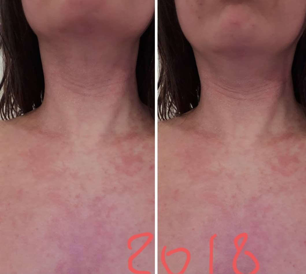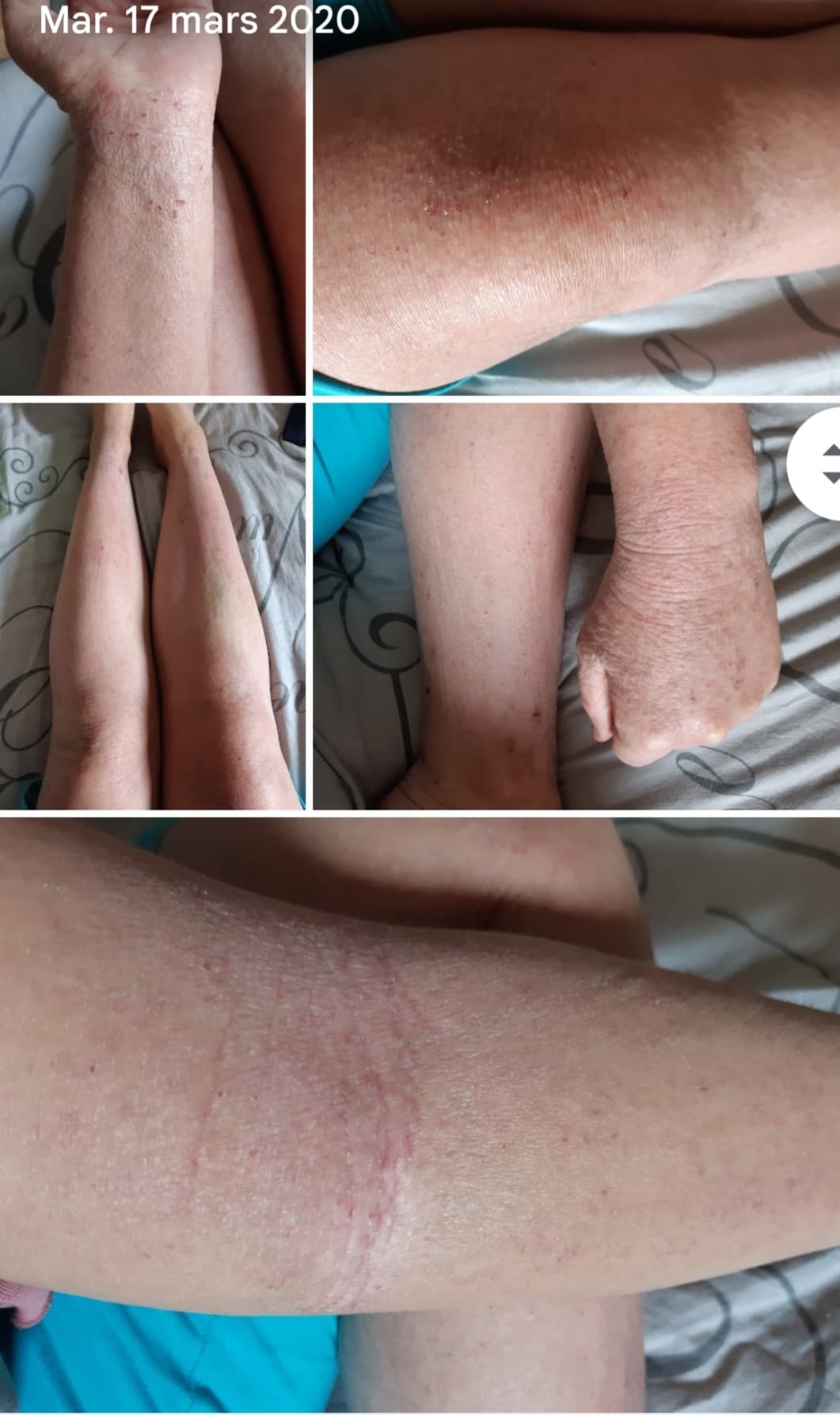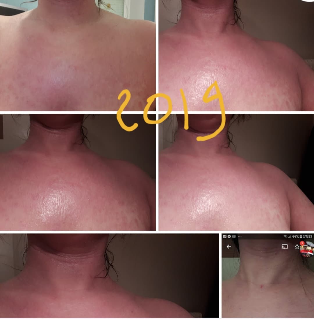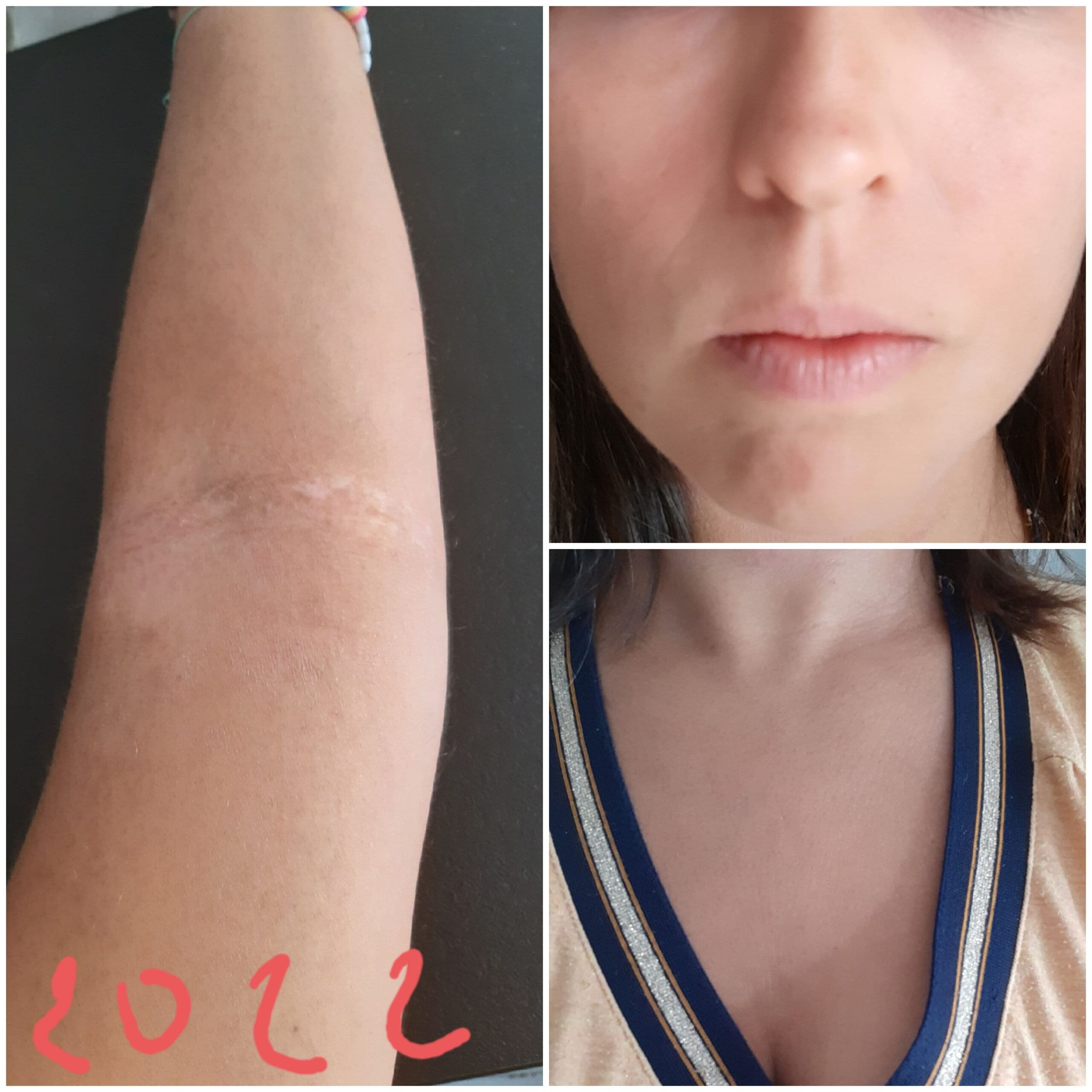 Début 2020, commence la fameuse peau d’éléphant au niveau de mes genoux, bras, mains, cou. Cela va durer quelques mois puis en septembre, les choses commencent à s’améliorer. J’ai également arrêté la crème hydratante depuis quelques semaines. Peu à peu, je revis ! Ma peau devient de plus en plus belle, je dors mieux. Je vais bien ! Quelques petites rechutes de temps en temps mais rien de méchant.