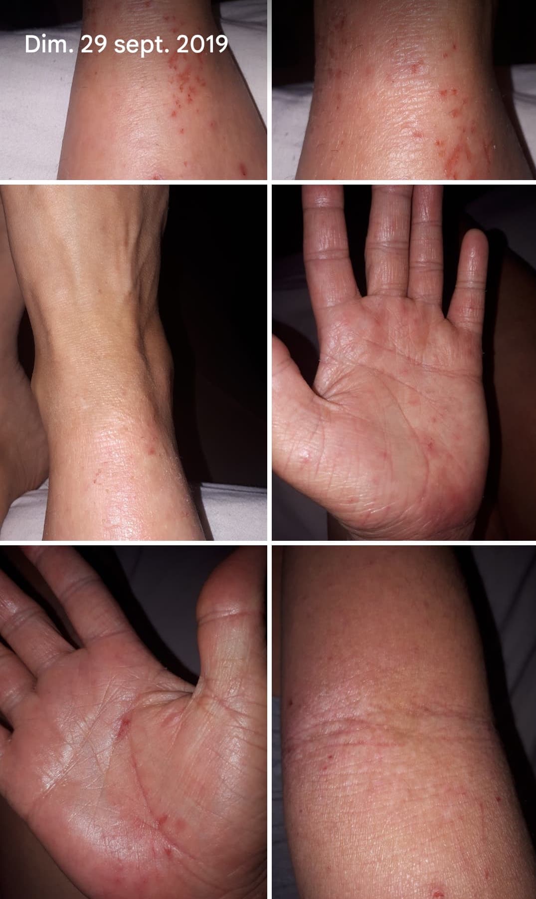 Année 2019, un peu de mieux mais beaucoup de rechutes. Quelques jours de bien pour plusieurs semaines d’enfer…Je passe ma vie à me gratter et tout mon corps pèle.